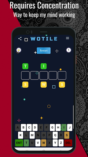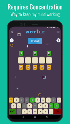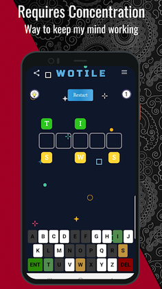 Embark on a word puzzle adventure with Wotile, the ultimate game of its kind! Engage your brain and memory as you immerse yourself in unlimited word guessing challenges. This exciting free game is not only fun, but it also helps you learn new words and keep your mind sharp. Get ready for an unparalleled word puzzle experience with Wotile! Challenge yourself, enhance your vocabulary, and immerse yourself in the captivating world of Wotile!