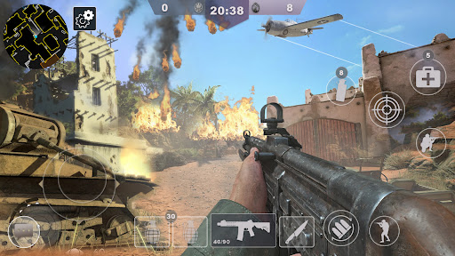 World War 2 : WW2 shooting games FPS Battle Combat also have Battle royale mode where you can play with bots as multiplayer and eliminate other players to be best ww2 shooter in this FPS battle combat ww2 shooting games .Unlike other cover strike games ,This ww2 shooting game have action and thrill which is not available on other ww2 shooting games which can be play as offline gun games as ww2 strike .
