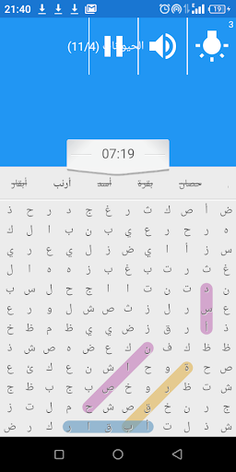 When clicking on one group, I choose between the approach that I want, easy, medium, or difficult, then I click on the follow-up, and a screen opens for us that includes Arabic letters with the words at the top and what is meant Search for it...I am looking for the sequence of letters to form a word from the words that appear at the top. The sequence of letters is horizontal in both directions or vertical in both directions, or the sequence of letters is diagonal in the four directions. I click on the first letter of the word I am looking for and then drag in the direction of the letters that make up the word until I reach the correct answer....I try to form all the words as soon as possible...then I click on play again or move to another axis ....