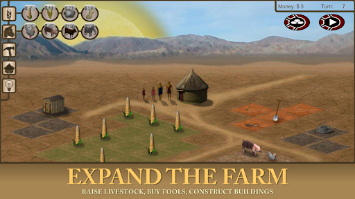 To improve your farm's productivity and expand its operations, you must plant crops, tend livestock, purchase tools and farming machinery, and construct wells and buildings. Additionally, you can invest in community projects such as roads, schools, communications, clinics, and political representation. However, these investments are often costly and might detract from your immediate needs.
