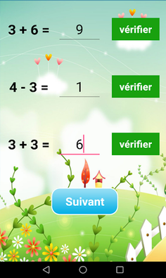 Quand l'enfant clique sur le choix correct dans la addition ou la soustraction, si ce bonne elle devient vert. Pour continuer l'enfant devra cliquer sur le bouton suivant.