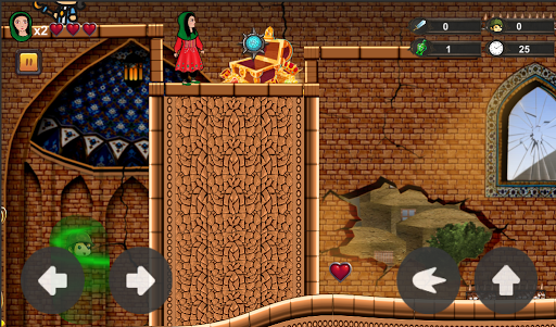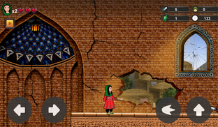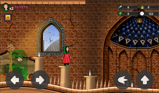 The first level presents the princess with her biggest challenge yet as she must fight her way through a castle filled with different enemies under the wizard's spell. The castle staff was under the wizard's influence, but the princess can break the spell by collecting magic potions and releasing them. Completing this stage requires the princess to be successful in freeing the castle staff and defeating all enemies.