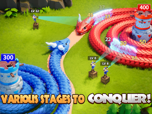 Form alliances, establish castles, and defeat a giant snake in this tower defense game with 200 levels and real-time combat control.