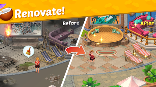 You can collect resources during the game, renovate and redesign the island hotel to restore the former glory of the resort.