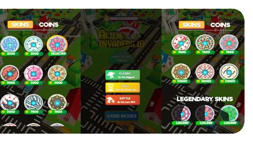 You'll start sucking small objects until your UFO will get bigger which will be capable of gulping down larger objects such us cars, houses or even buildings. There are three modes to choose from which are Classic, Solo and Battle. Unlock and purchase cool skins as you play this game. Have fun!