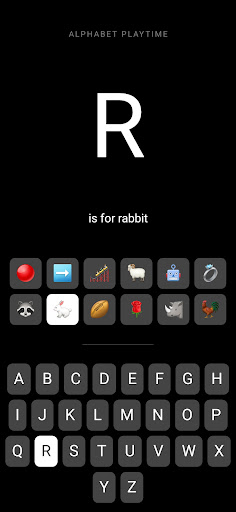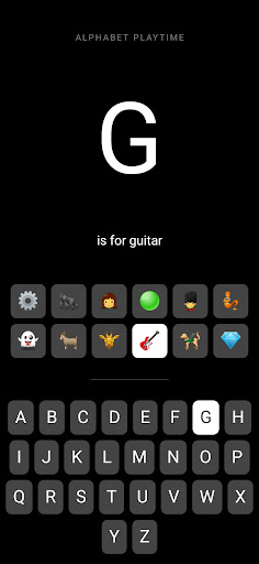 Kids can explore the letters of the alphabet, as well as dozens of emojis that show what words start with those letters.