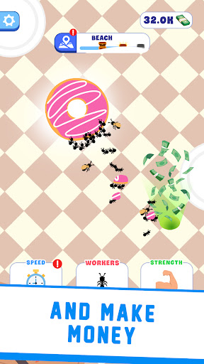 Enhance your ants' strength: By using gold, you can level up your managers or purchase more ants farm, upgrading their speed, strength, and productivity to transform into the mighty ant tycoon.