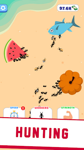 Upgrade and expand your ant idle colony: The ants in your colony diligently gather all the food from the surroundings and bring it back to your ant hill. As the food supply runs low, new and exciting delicacies emerge for your ants to feast upon.