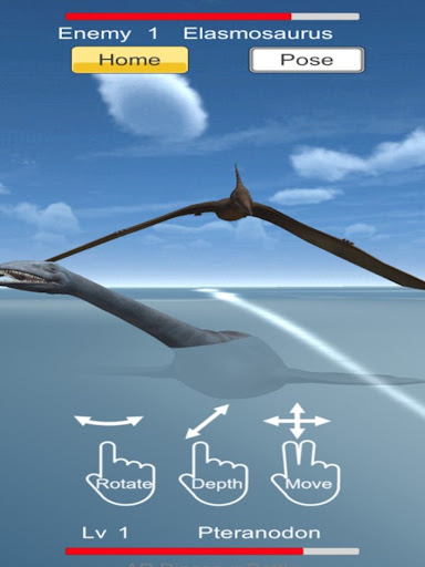 - By pressing the [Pose] button, you can observe the dinosaurs from various directions.