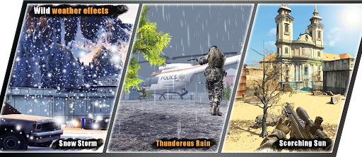 Weather may not always be in your favor. You may have to battle on a beautiful sunny day mode or a rain mode. You may have to tolerate fighting on a heavy snowfall mode. Whatever is the weather, it will test your army gun game skills and give you ultimate thrill.