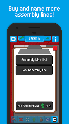 Assembly Line combines elements from idle and tycoon games. You need to build the best assembly line in order to have the most profit possible. There're different types of machines that will help you achieve that, but you must use them strategically.