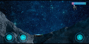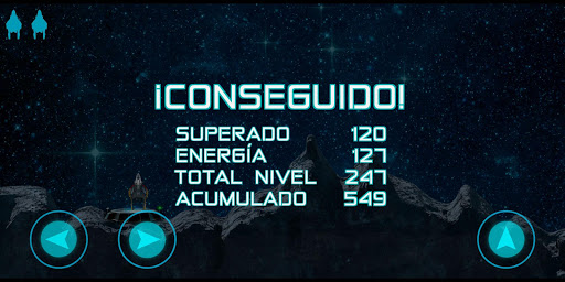 Debes aterrizar tu nave en los diferentes escenarios que se plantean. Cuidado con bajar demasiado deprisa o con excesiva velocidad lateral y vigila de no quedarte sin combustible.