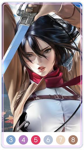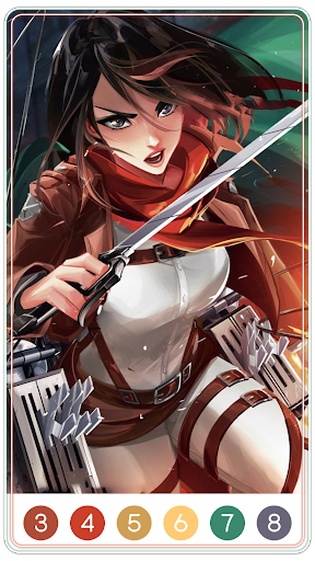 We always feel stressed out in daily life, here we offer you a free Attack on Titan coloring book to relax yourself. In the coloring game by number you will enjoy the coolest experience of painting and creating artworks! And make the world become colorful and alive under your fingers!
