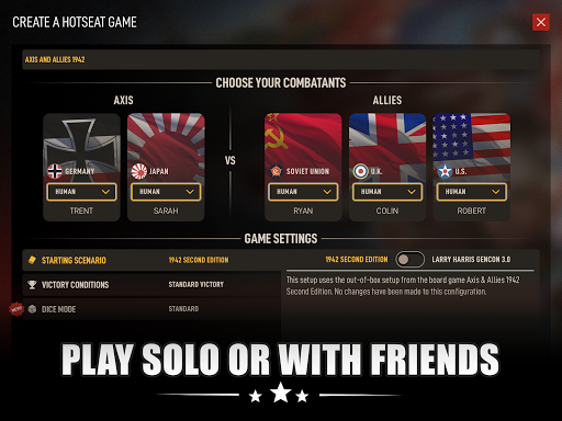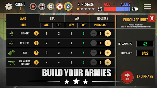 Team up with friends from different platforms, play solo against the A.I, or pass & play with a friend on one device. You can choose from two game scenarios with different victory conditions and take command of armies from either the United Kingdom, United States, or Soviet Union as the Allies or control Germany or Japan's armies, and prepare them for battle as Axis.