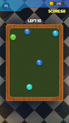 Adjust the shooting direction of the balls, find the same number of balls and merge them.