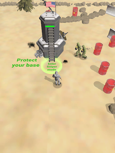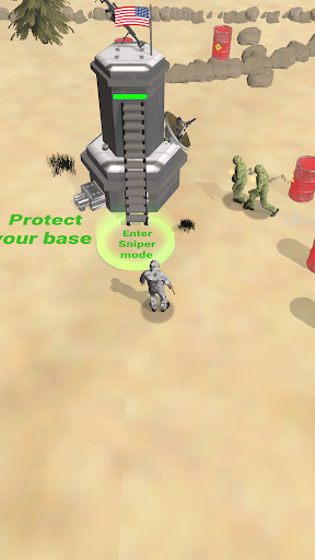 Kill all you enemies before they reach and destroy your base, shoot them with sniper from base and with gun in the open area