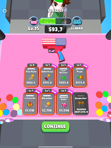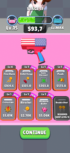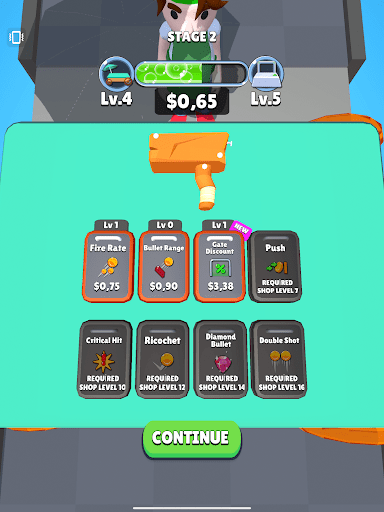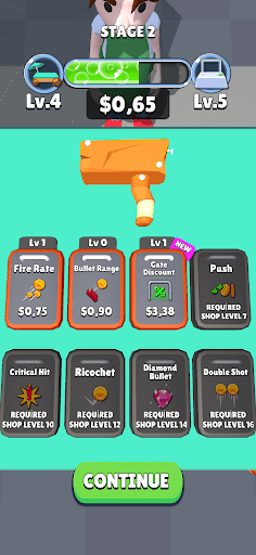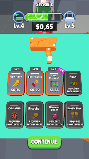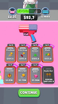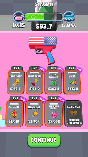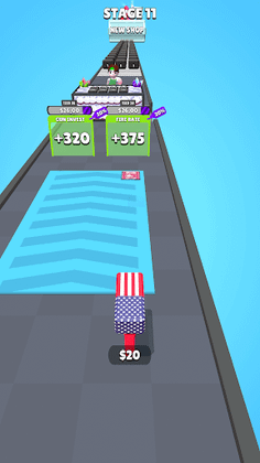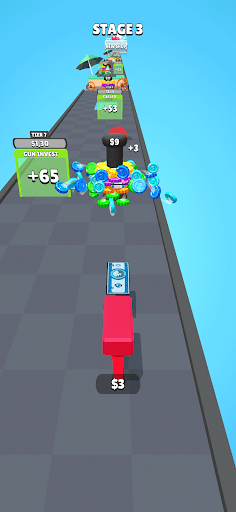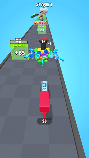 Collect moneyUpgrade your money gun at the vendorsGet to the finish line