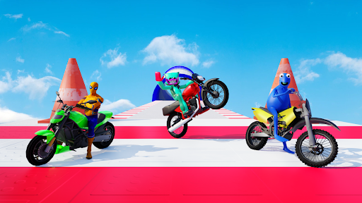 Our game won’t be limited to ordinary tracks. We have created tracks that will test your moto driving skills, while giving you the freedom to perform different kinds of stunts in our motorcycle game by playing as a superhero character. Get ready to bike racing on tracks that look like roller coasters for motorbikes where all your mastery will be required.