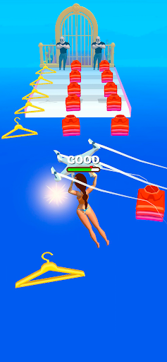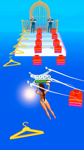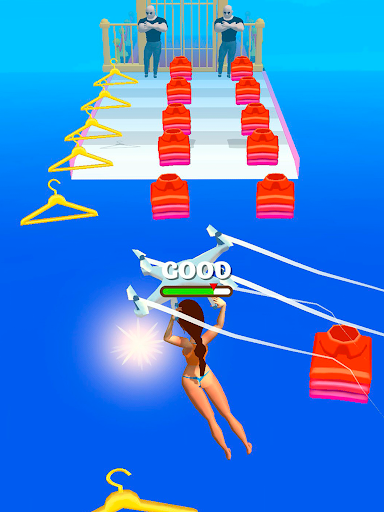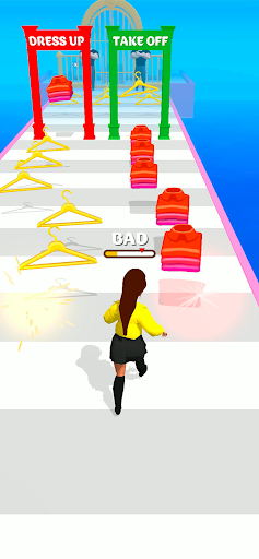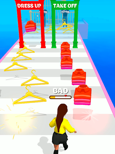 At the start of each level, the player has to run and change their character on the go. You can dress up or strip down to a bikini, and the number of clothes affects the level results!