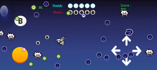 Retro Arcade game : • Arcade shooting game with multiple powerups • Powerups include laser , beserk mode , multishooting mode • Infinite play• Powerups generated by defeating enemies.