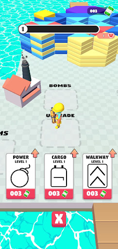In this game, you have to collect materials from destroying structures in the Arena, and you can also sell the material and build new things in the Arena, unlocking them as you progress into the game.
