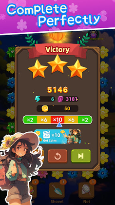 😊 Blossom Odyssey Saga's gameplay is a breeze! Simply tap on a flower, and slide it to connect adjacent or diagonal flowers of the same color. Always be mindful of your steps and aim to reach the target before it's too late! ⏳
