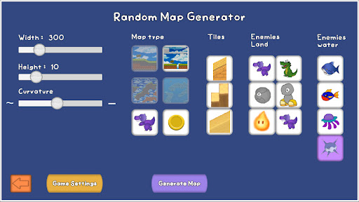 It is up to you to create your own levels which you can play. You can build everything from scratch or use the random map generator as a starting point. Enemies and coins can be automatically spawned if you like. There is no in-game music, but there is a simple music maker, which allows you to create your own music. Otherwise, before starting this game, you can start your own music player, spotify, audible or whatever to make it play in the background while playing this.