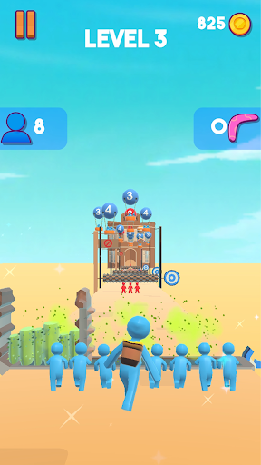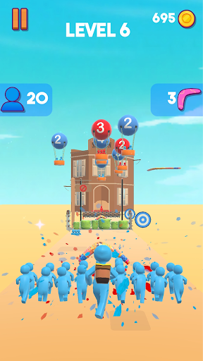 Aim your boomerang and gather your men from the air balloons!