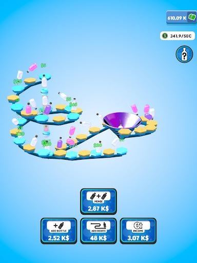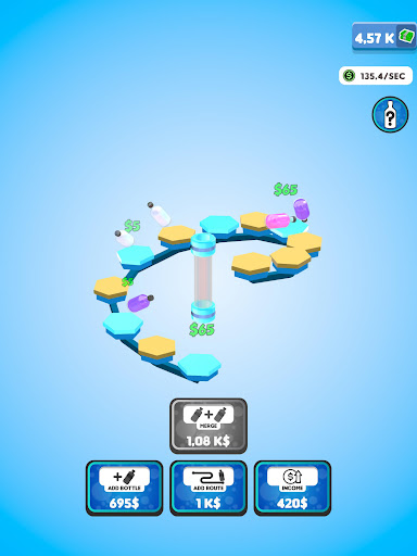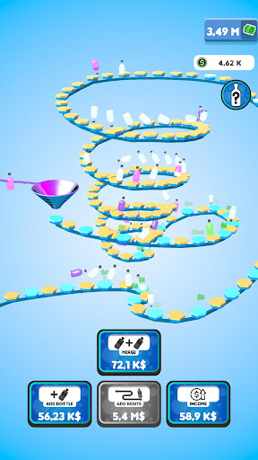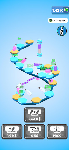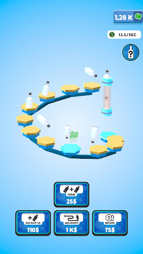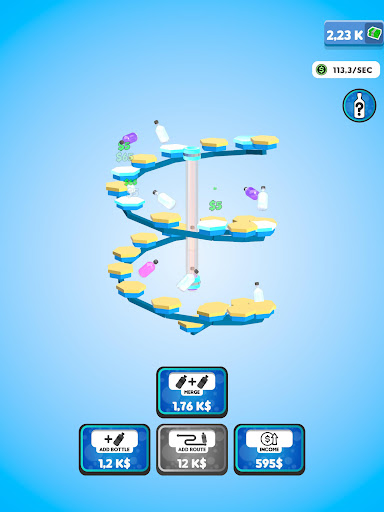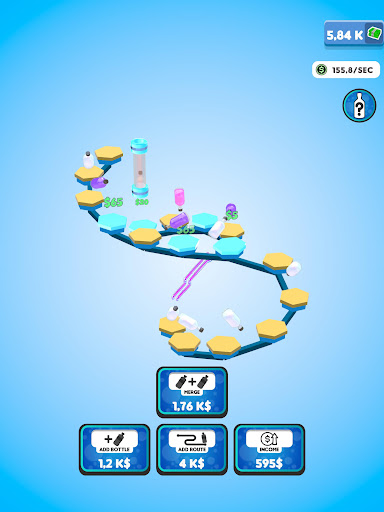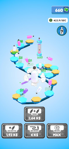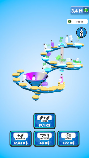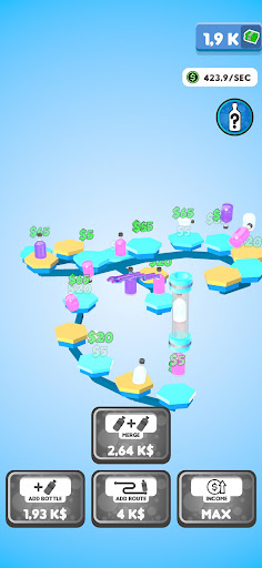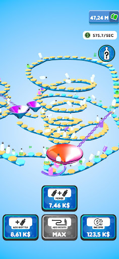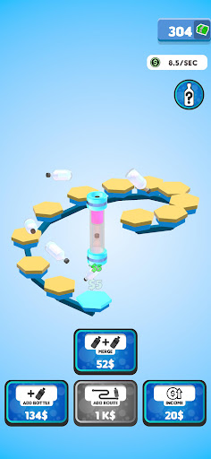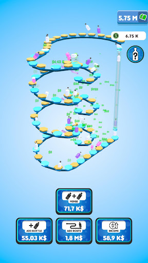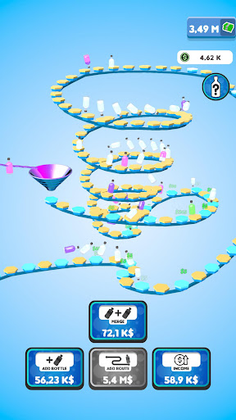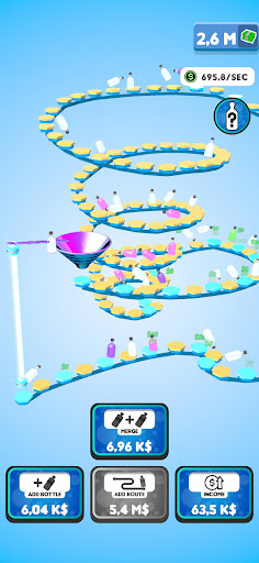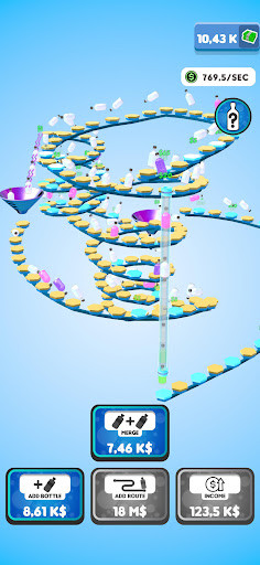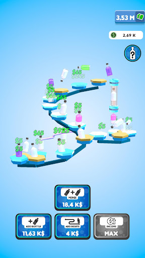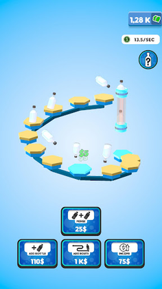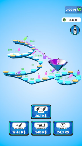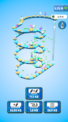 Flip your bottles to earn money! Buy new bottles with your money and merge them for better ones! Expand the route your bottles are flipping on to gain even more profit! You will be flipping the weirdest and the coolest bottles in no time!