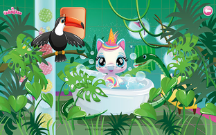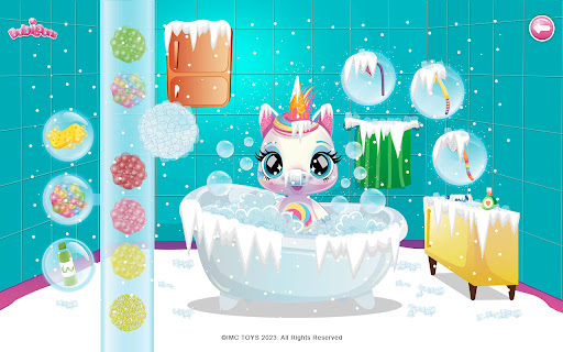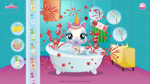 And now it’s time to relax with the bath salts, which will transport you to an amazingly magic world, turning Lola’s bath into a plane that flies with the birds or into a space rocket… Or if you prefer music, you can turn Lola into a rapper or take her to a party in the disco. Everything is magic with these bath salts. Maybe you would like to visit a jungle full of dangerous snakes and interact with the animals or smash all the worms that will appear with the pink bath salt… Everything is possible, even throwing snowballs at Lola while she is bathing.