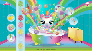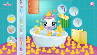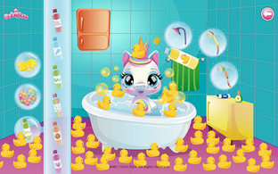 Choose a color of shampoo to bath Lola and… surprise!!! The blue one will fill the bath with beautiful fishes, but the green one will fill it with nasty worms, and the red one with fireworks… that’s crazy! Now the bath is full of rubber ducks from the yellow shampoo and bats from the purple shampoo. Try all eight colors and have loads of fun bathing Lola.