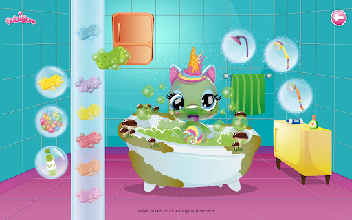 And if you had fun with the shampoos, now you’re going to lose your mind with the seven sponges rubbing Lola… Do you want to learn a secret? If you rub Lola with the green sponge, the water in the bath will get stinky and full of funguses and, what’s worst, Lola will not stop farting disgustingly… Very funny, isn’t it? Luckily, we can bath her with the pink sponge and fill the bath with hearts, or with bubbles if you use the blue sponge. But be careful with the red one, Lola doesn’t like it at all. Play with the Bubiloons and find out what happens with each one of the sponges.