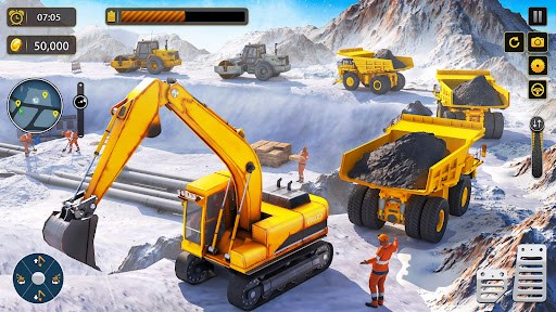 Driving the snow excavator and the crane. The driving controls of heavy machinery are sensitive. Be careful not to cause a realistic accident with bulldozer and excavator while operating this JCB excavator. Construction simulator game.