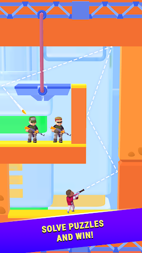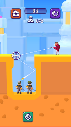 Every shot must be made wisely. Patience and accuracy - these are the main ingredients for the successful destruction of the enemy! if you solved the puzzle of this level, then choose a target, aim and shoot - the bullet and ricochet will do the rest for you! Can you shoot all enemies with just one bullet? The number of bullets in each level is limited, so use your wits to the maximum!