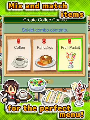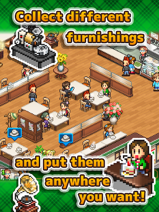 Would you like to own and manage your own coffee shop? Look no further than this cute simulation game that includes all the smells and atmosphere of a fresh coffee bean shop. When you set up shop, your first task is to arrange your tables and chairs, and then wait for customers to start flowing in through your door. Perhaps you can enhance the ambiance by adding features such as magazine racks or modern furnishings. Serving coffee and tea is just the jumping-off point. Try out different mixtures to satisfy your loyal customers or bring in new ones. You can also feature your favorites on the Specials Board. If you are in the mood for snacks, to create Combo Meals, mix food products with drinks. These combinations will also be entered into competitions, so choose the right meal for the right occasion and see your cafe become more famous. You can relocate your cafe to multiple new sites and find new customers, even some familiar ones. Don your apron, get boiling and make your way to becoming a five-star cafe owner. The game supports drag and drop to scroll and pinch-to-zoom. Look for "Kairosoft" to find all of our games or visit us at http://kairopark.jp to learn more about this and other free-to-play and paid games by Kairosoft. Kairosoft's pixel art game series is still going strong! Follow us on Twitter to keep up with the latest Kairosoft news and information.