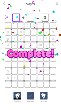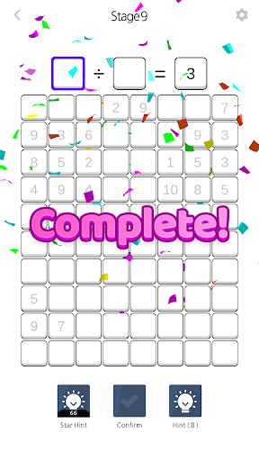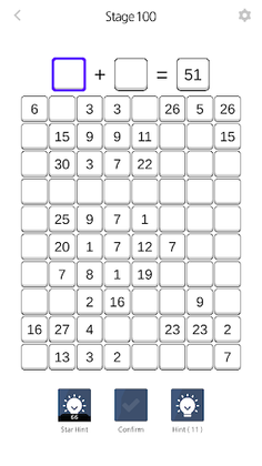 Here's how to play the game: First, you need to check the calculation symbol and the answer. Next, choose the number that corresponds to the purple square's location. After selecting two numbers, click the OK button to check your result. You can accumulate star hints that will come in handy along the way.