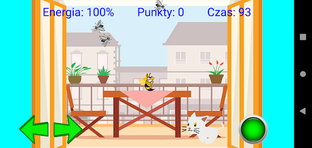 Every jump decreases energy by 5%. If you want to have full energy, you must go to the second room on the right side. You can choose color of the cat. Round button is for approving your choose and for jumping.