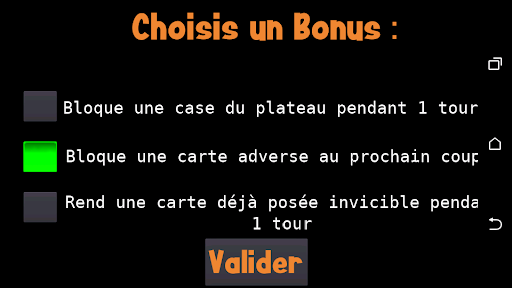 Tous les 2 tours, les joueurs doivent répondre à des questions de connaissances pour débloquer des bonus ( Bloquer une carte, bloquer une case du plateau, renforcer une carte ).