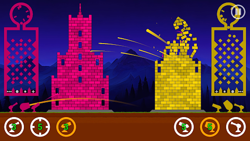With three powerful cannons at your disposal, you must choose the right moment to launch marbles at your opponent and bring down their castle. Play against the AI in One Player mode, challenge a friend in Two Players mode, or sit back and watch the destruction unfold in Spectator mode. Get gold bars and unlock new castles, colors and countries. With fast-paced gameplay and intuitive controls, Castle Warfare delivers a thrilling experience that will test your strategic and tactical skills. Will you crumble under pressure, or will you emerge as the champion of castle warfare?