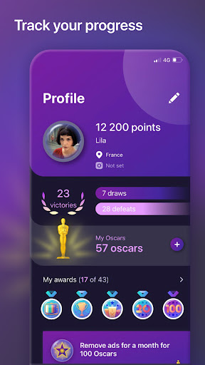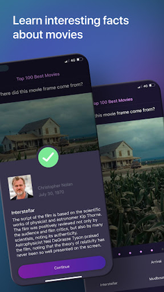 Quiz can be played alone or with friends. All quiz questions contain a short description with interesting facts about the movie. After our game, you will definitely want to watch something new)