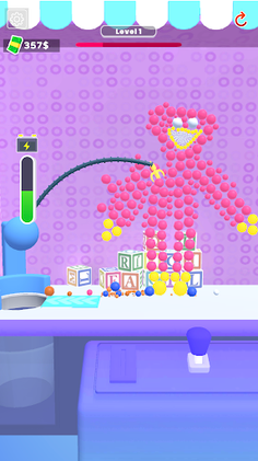 Try to improve your characteristics to destroy the toy and get money from the claw machine!