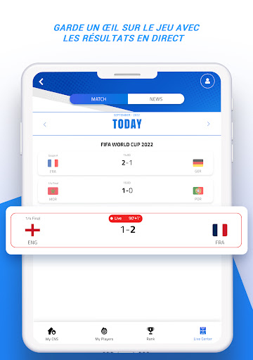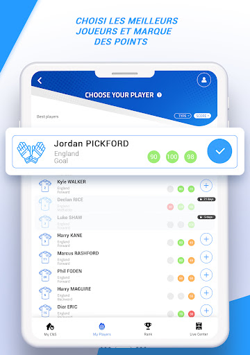 You can plan your future selections or do it day by day. To help you adapt your strategy, you can also access your selection history, the scores of previous matches and analyze how your score is calculated.