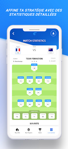- Access all the information and statistics of the matches before and during the game: line-up, past scores, and latest news to help you make the best choice and pick the right player