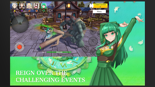 Experience the magical world of Crystals of Fate in a 3D high fantasy Role-Play-Game, where you can command up to five characters with unique weapons and abilities. Elevate your heroes' potential, strength, and defense with the enlightened system, unleashing awe-inspiring special attacks. And enjoy a story-driven anime game, where strategy is key to victory in the medieval fantasy world.