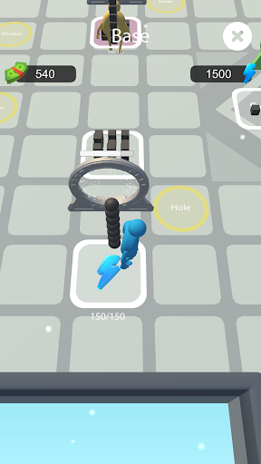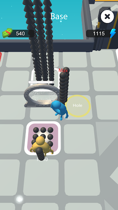With the Hole, you collect objects to gain energy. You use this energy at the base to produce new objects. You can either upgrade these objects into better ones or sell them. With the money you earn, you can open new production areas or upgrade existing ones.