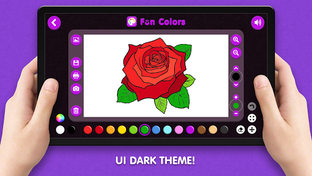 In this painting game you will find various categories of coloring pages and a mode for drawing! In addition to an endless palette of colors and a variety of paint brushes in Fun Colors there is an ability to upload your own images or photos and draw on it!