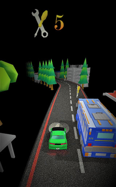 The aim of the game is to drive through the night collecting tools for points and dodging vehicles, buses and road barriers along the way.