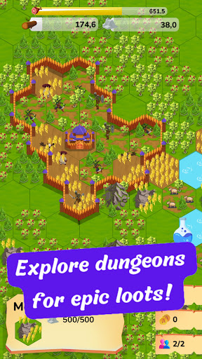 Collect heroes and teach them jobs! Farmer, lumberjack, miner... make them collect resources to create buildings. The more resources you collect, the more your heroes gain experience points.