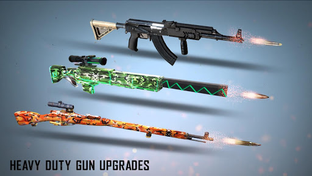 - Upgrade to heavier guns from our huge arsenal of assault rifles to hunt down your enemy in different parts of the combat zone.