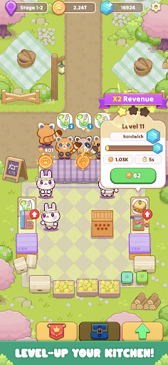 In this delightful game, you will visit a variety of restaurants and watch your team of cute animal Waiters and Chefs serve delicious foods to hungry customers. Gather more currency and upgrade your food stations, to unlock aesthetically pleasing new stages and progress through the game’s exciting world!
